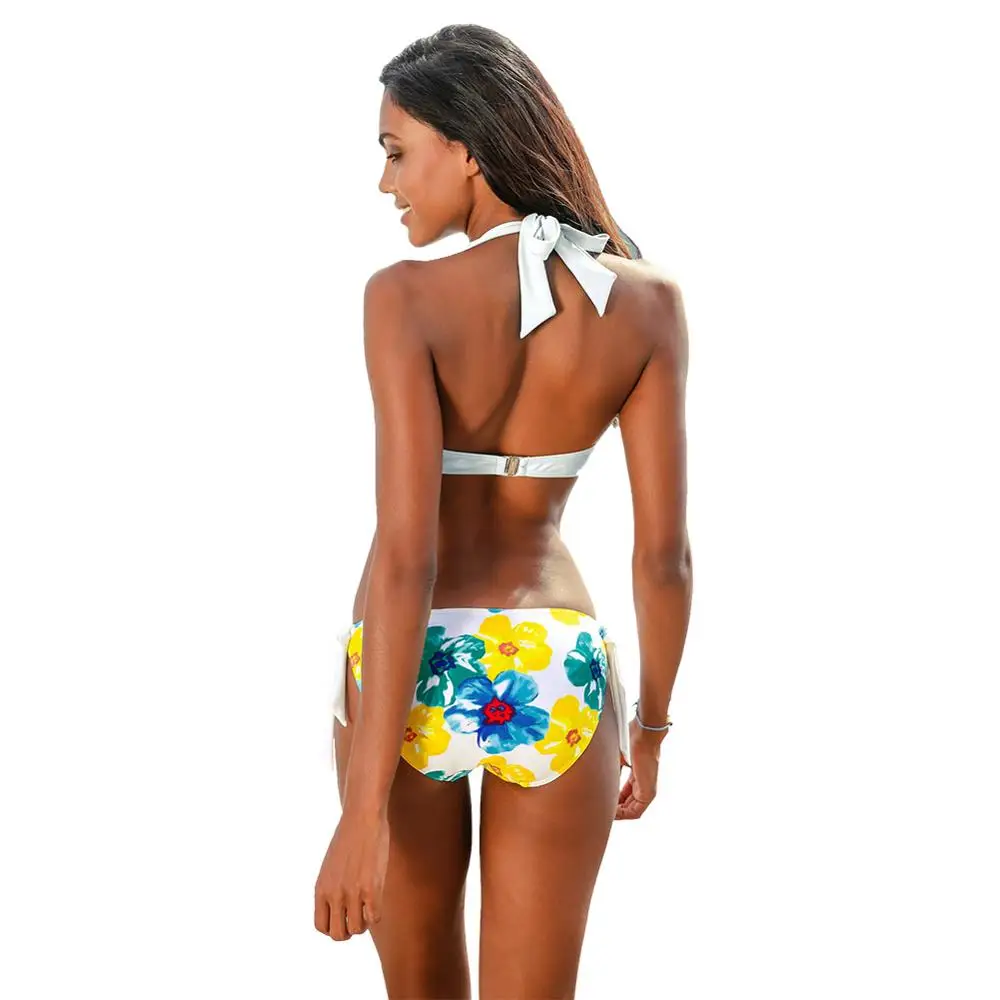 Best Product Women Bikinis Mixed Floral Print Girls Two Piece Lovely Bikini Bathing Suit Halter Bikinis